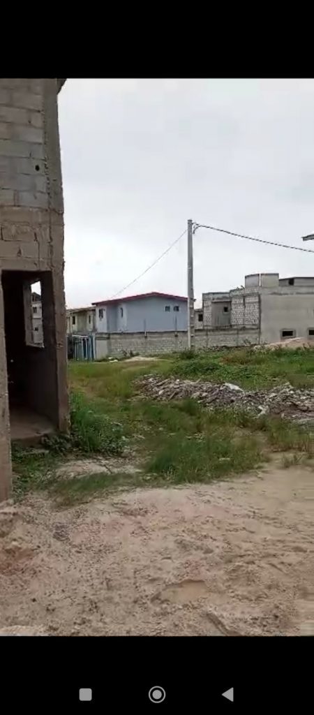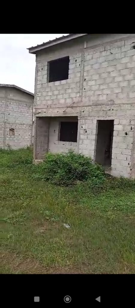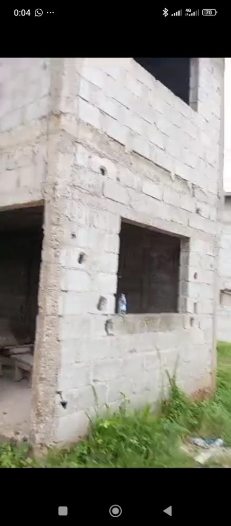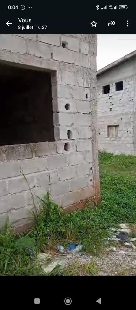 Duplex brut modifiable aux gros oeuvres de 4 pièces , 3 salles d eau , garage 2 voitures , cour avant , cour arrière , cuisine / 225m² a l angle de 2 voies au sein de la belle cite BELLE VUE a songon bimbresso a Yopougon. VIDEO DISPO A LA DEMANDE .