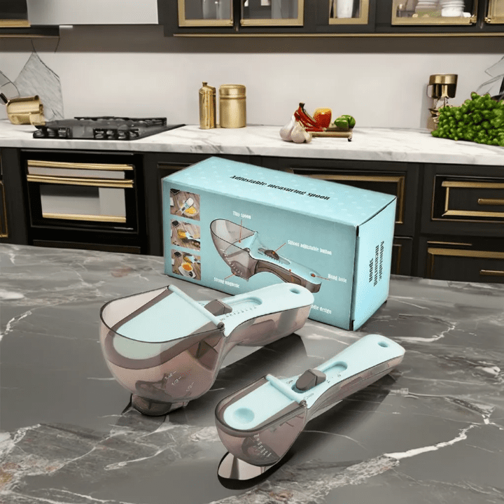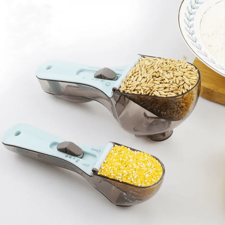 Cuillères à mesurer réglables avec échelle, cuillères à mesurer en plastique, tasses pour la cuisson, accessoires de cuisine, outils de mesure de cuisine pour hôtel, restaurant et maison.