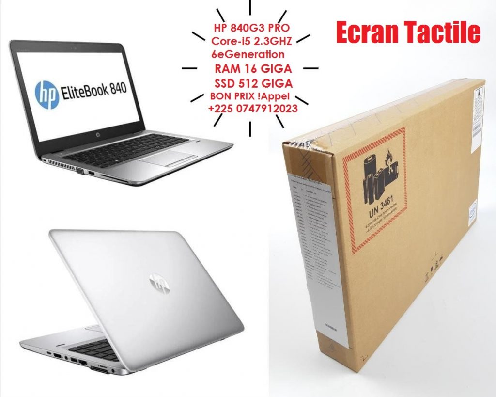 Maison Résultats de la recherche Electronique Ordinateurs HP 840G3 Corei5 ECRAN TACTILE RAM 16GIGA SSD 512 +225 0747912023