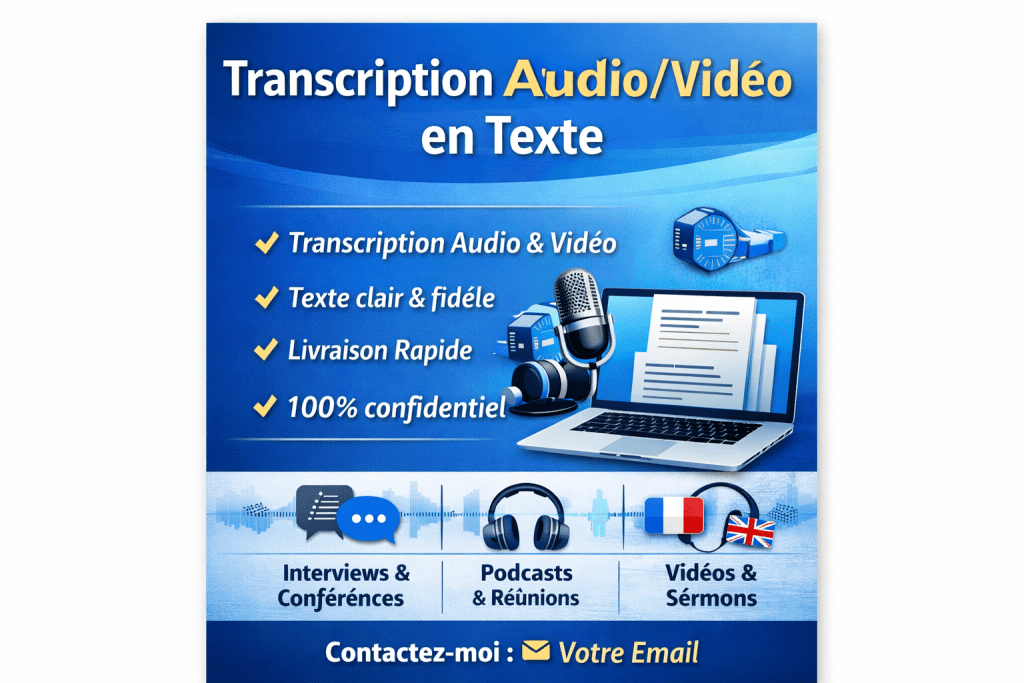 Vous avez des audios ou vidéos à transformer en texte clair, fidèle et exploitable ?