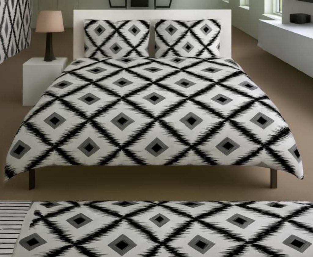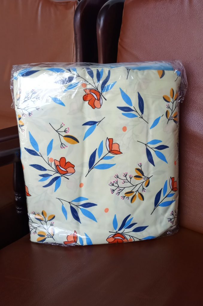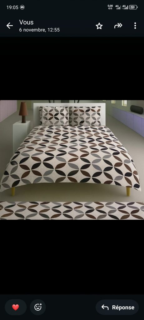Draps en cotton( trois places complets) de bonne qualité constitués d’un drap de lit, une couverture et deux taies.